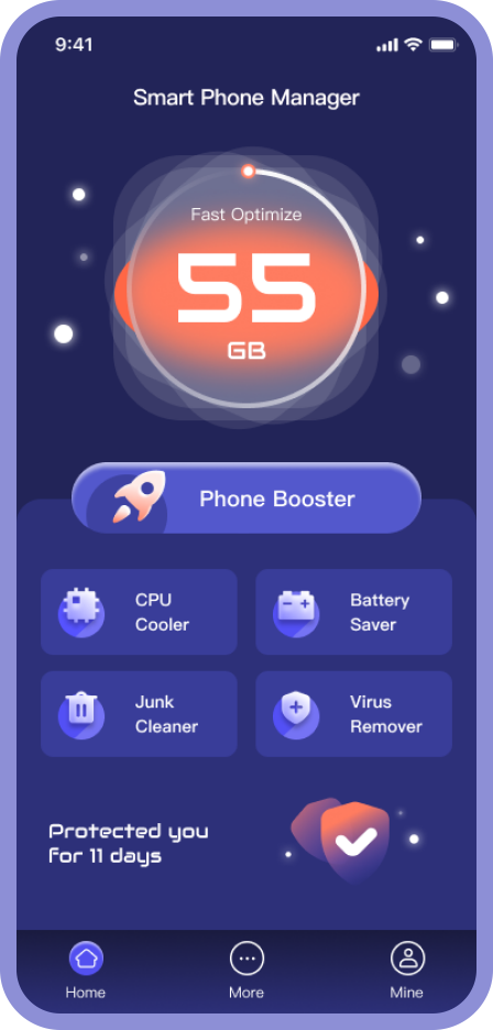 Keeping your phone clean is our top priority. We have several features to improve your phone's performance. Say goodbye to delays!